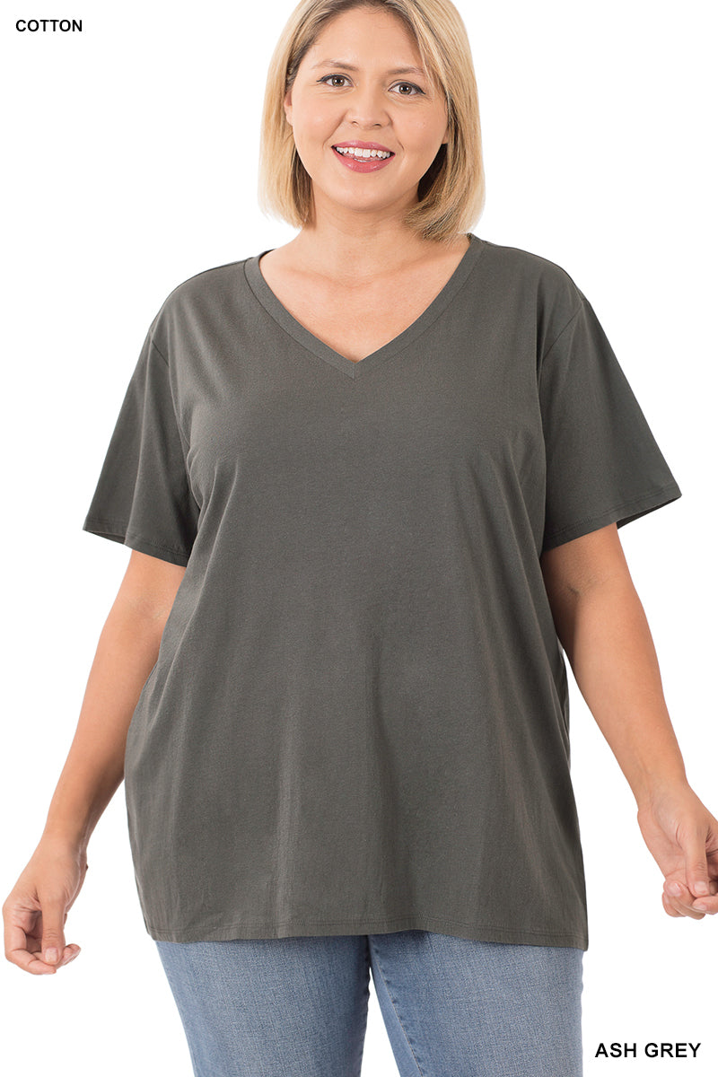 PLUS COTTON SHORT SLEEVE BOYFRIEND V-NECK TOP