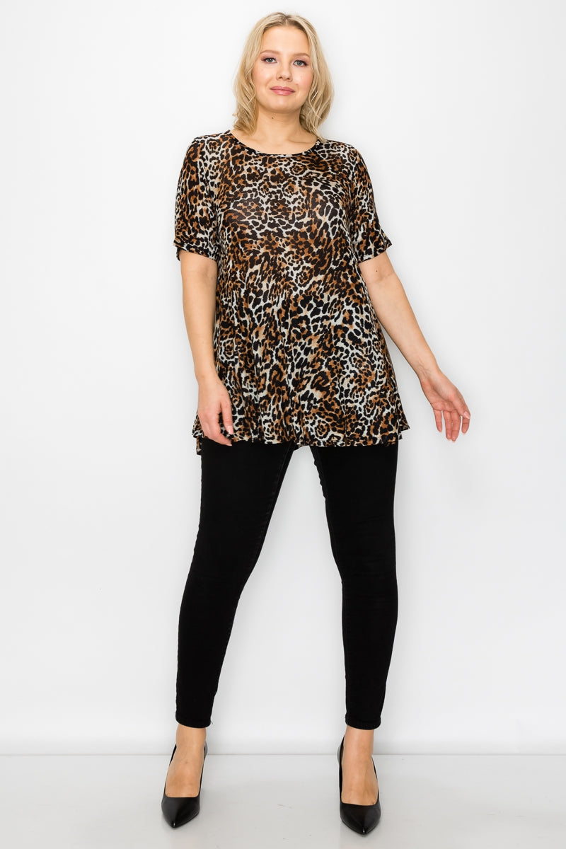 PLUS SIZE SHORT SLEEVES LEOPARD PRINT TUNIC TOP