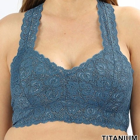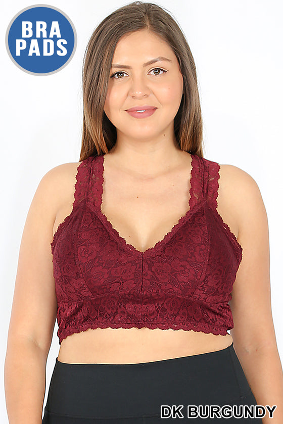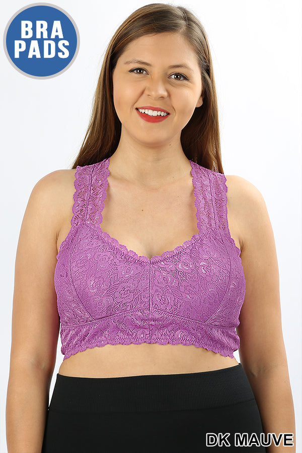 PLUS STRETCH LACE HOURGLASS BACK WITH FULL MESH LINING BRALETTE.
