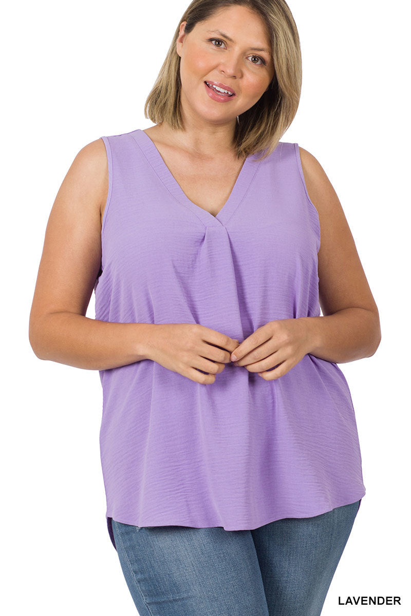 PLUS WOVEN AIRFLOW V-NECK SLEEVELESS TOP