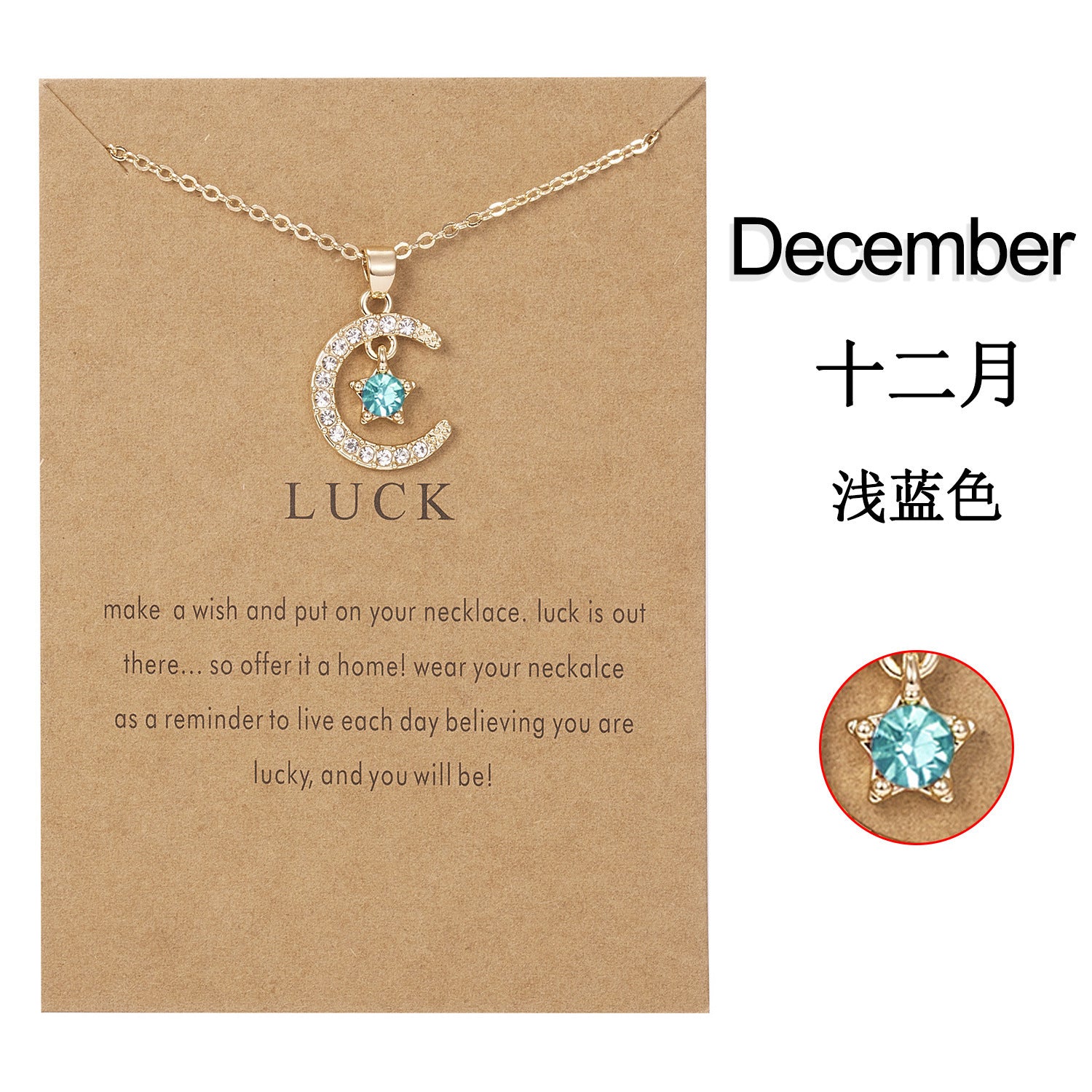 Birthstone Moon and Star Necklace. Lead and nickel free.