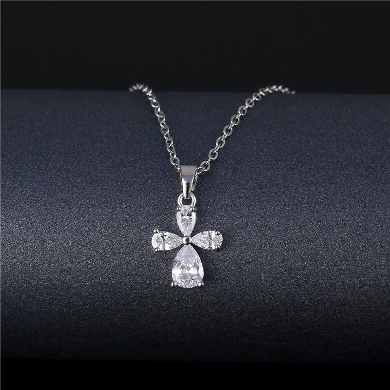 Geometric Crystal Zircon Pendant Simple Necklace. Lead and Nickel free.