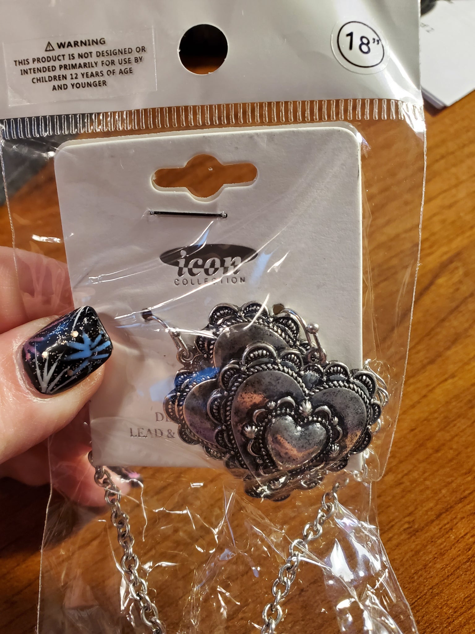 HEART SHAPED PENDANT WITH HEART SHAPED TURQUOISE WITH TURQOUISE DOWN THE CHAIN. LEAD AND NICKEL FREE.